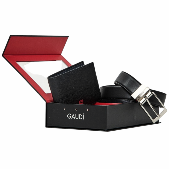 Set uomo GAUDI' portafoglio e cintura double face in vera pelle
