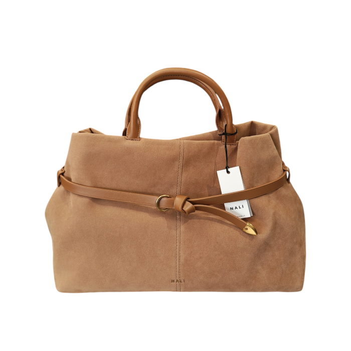 Borsa donna NALI' modello Melissa a mano in camoscio dettagli ecopelle e tracolla staccabile (TAGLIA UNICA - Biscotto)