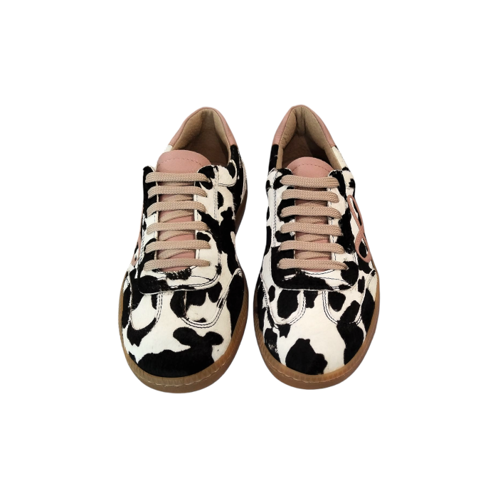 Scarpa donna OVYE' sneakers in cavallino effetto muccato con dettagli in pelle (38 - Bianco/Nero)